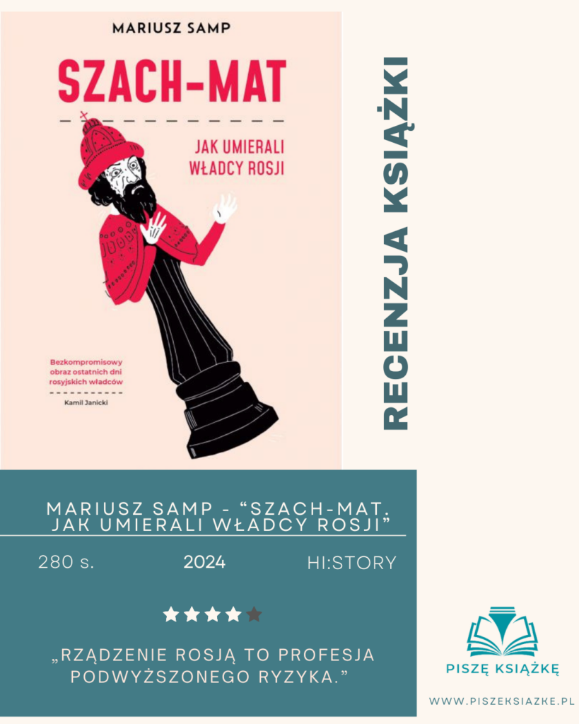„Rządzenie Rosją to profesja podwyższonego ryzyka” – pisze Samp we wstępie do książki. Jego „Szach-mat” to nie tylko barwna i wciągająca od pierwszej do ostatniej strony lekcja historii, ale również przestroga przed tym, jak zmienne bywają koleje władzy. Z przyjemnością polecam lekturę tej książki miłośnikom historii pragnącym poznać nie tylko losy władców Rosji, ale także zrozumieć prawidła i mechanizmy władzy obowiązujące od wieków w kraju Iwana Groźnego, Katarzyny Wielkiej i Stalina.